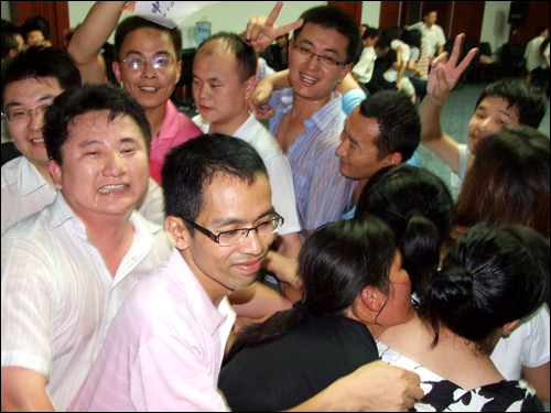 最為感動的是,我們的董事長湯傳忠先生也加入到互動環節,與大家一起體味著這個游戲的每一個瞬間,并不斷地給大家加油鼓勵,汗水順著他的發梢流下來,滴到臉上、身上,衣服全都濕透了,如同淋過雨一般,但他的臉上始終洋溢著自信、堅強、睿智和剛毅的笑容,他的一言一行給現場所有人以信心和鼓勵,大家在他的帶動和影響下,也信心倍增、激情滿懷,手握手、肩并肩,緊緊地靠在一起,互相鼓勵著,互相扶持著,不管多么勞累和疼痛,不管多么炎熱和難熬,不管面臨著多么嚴峻的考驗和困難,大家都緊緊地握住隊員的胳膊,絕不輕言放棄,決定為了團隊榮譽而奮戰到底!這一幕場景匯集成令人動容的感人畫面,凝聚成撼動人心的精神力量!