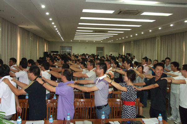 在培訓的最后,姜偉老師帶領大家帶走過了一段心靈之旅,讓我們很好地審視了自己的過去,思考了自己的現狀,感懷了一路走來的人生。為了達到更好的效果,會場關閉了全部燈光,隨之耳邊傳來舒緩輕柔的音樂,然后姜偉老師用充滿磁性的聲音聲情并茂地向大家講述我們前進路上所遇到的“貴人”:給予我們生命的父母、傳授給我們知識的老師、為我們提供發展平臺和機遇的老板、給我們幫助和支持的同事……他生動的講述讓在場的很多人都流下了真誠感動的淚水!不僅僅是因為感動,而是很多人想起了自己的父母、家人,想起了自己做銷售一路走下來的艱辛和磨難!在日復一日、年復一年的重復工作中,大家的激情消失怡盡,但是面對我們頭發花白、老眼昏花的父母,面對他們充滿期待的眼神,再大的困難、再多的挫折,又能算得了什么呢?的確,很多時候,我們不僅僅為自己活著,而是為了父母兄弟、為了孩子、為了心中的信念而活著!做銷售難,做一名出色的銷售更是難上加難!拜訪難,簽單更難!達成目標難,超越目標更難!保持好心態難,一直保持著好心態更難。所以,回想起這段坎坷路,我們每個人的心里都有酸甜苦辣,但是,我們都在堅持,為什么?不正是為了實現心中的夢想嗎?可遇到困難的時候,碰到挫折的時候,我們是否還一直堅守著心中的夢想和責任?在分享環節中,有兩位同仁流著眼淚說:父母面朝黃土背朝天累死累活地干一年,可能并不能賺上多少錢,特別是家在農村的,趕上好年頭莊稼收成會好些,要是趕上壞年景,可能這一年就白干了!老父老母真的挺不容易的,如果我們能好好工作,可能會讓父母的生活過得好一點,為了我們頭發花白、含辛茹苦把我們辛苦拉扯大的父母,我們沒有什么理由不努力!是啊,我們很多同仁都出身于平凡的家庭,我們可能更懂得生活的艱辛,更能體諒到父母的不容易。為了父母,我們一定要微笑著面對生活的坎坷,為了父母,我們一定要好好工作!