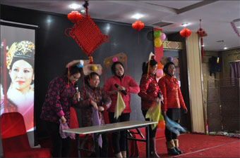 表彰環節結束后,聯歡會揭開了狂歡的序幕,本次聯歡會分成了四個隊:新星隊、夢之隊、雄鷹隊和雷霆隊。首先進行了團隊風采展示,接下來各個團隊給我們帶來了精彩的節目匯演:《幸福廚房》私房菜和創意菜制作大PK環節既檢驗了員工的廚藝水平又考驗了大家的團隊協作能力;活力四射的舞蹈《Nobody》、幽默搞笑的小品《土豪版甄嬛傳》、催人奮進的歌曲《中國人》、《明天會更好》贏得了陣陣掌聲,體現出基地員工多才多藝的另一面;在節目表演的過程中還穿插組織了精彩的游戲節目,讓大家玩的歡呼雀躍、不亦樂乎。
