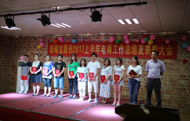 緊張激烈的競技賽之后,新稀寶股 份2017上半年電商、商網工作總結及表彰大會17:30開幕。會議剛開始,陳文歡經理做了簡單的人事任免宣布,隨著公司不斷發展壯大,機構調整也越來越 合理,人才的選拔,布局的完善,預示著企業的發展將愈來愈好、愈來愈快。緊接著是張秋峰經理發表講話,從辦公地點的愈加緊湊、商網質的飛躍,電商的持續發 展說起,感慨南寧分公司的發展之迅速。不但健康行業發展快速,孕嬰事業部也在快速增長中,外部競爭激烈,內部競爭亦不容忽視。電商、商網下半年需心往一處 想,勁往一處使,爭取早日實現跨越式的增長。