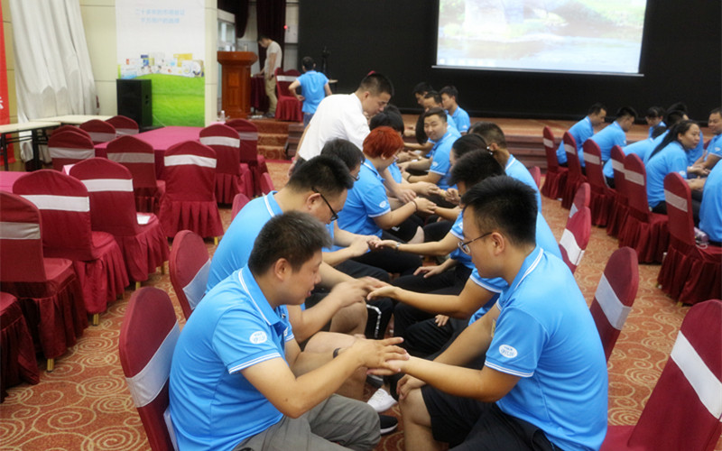 一滴水只有放進大海里才永遠不會干涸,一個人只有當他把自己和集體事業融合在一起的時候才能最有力量。為打造一個齊心聚力的集體,激發每名員工的無限潛能,提高全體成員的向心力,我們開展了團隊建設游戲。游戲中,十四個隊伍積極熱烈的打造出自己的隊名、隊歌、口號、目標。“勇爭第一”“打敗第一”“保持第一”“永遠站在第一峰”……的口號體現出銷售人員緊密協作、攻堅克難、勇爭第一的團隊風采。