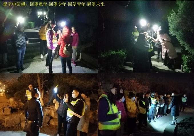 行走中大家克服體力不支,互相鼓勵(lì),互相攙扶,在即將到達(dá)終點(diǎn)時(shí)舉杯相慶,不知不覺中天空開始泛白,黑夜?jié)u漸消退,就像我們?cè)谔綄?nèi)在的路上一樣,每個(gè)人的內(nèi)心都更加的堅(jiān)定也更加的清晰。
