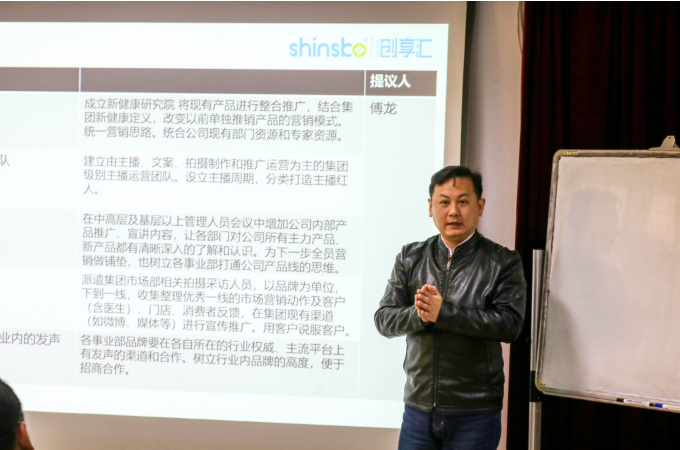 本次分享會共有三位提案人進行提案。孕嬰營銷中心傅龍提出5個議題,分別是:建立新稀寶新健康研究院,將現有產品進行整合推廣,統一營銷思路;建立集團層級主播團隊,分類打造主播紅人;開設內部營銷產品說明會,在中高層及基層以上管理人員會議中增加公司內部產品推廣,讓大家了解產品的同時為全員營銷做鋪墊;進行市場采風,收集整理優秀一線的市場營銷動作及客戶、門店、消費者反饋,在集團現有渠道進行宣傳推廣;打通各品牌在各自行業內的發聲平臺,樹立行業內品牌的高度,便于招商合作。