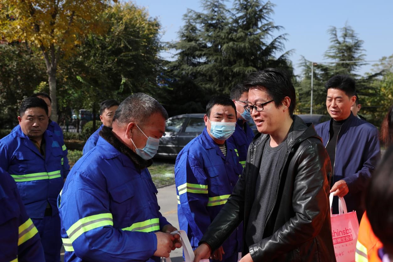 進入秋冬后氣溫驟降,隨著陣陣寒風,樹葉紛紛飄落。在市區的各個路段,隨處可見環衛工人不停移動清理落葉。不論嚴寒下雨,還是大雪紛飛,他們都穿行在城市的大街小巷,用手里的工具,守護城市的潔凈。為了體現新稀寶集團對環衛工人的敬意,新稀寶集團總經辦在馮小龍總經理的指示下對環衛工人進行了愛心慰問捐贈。