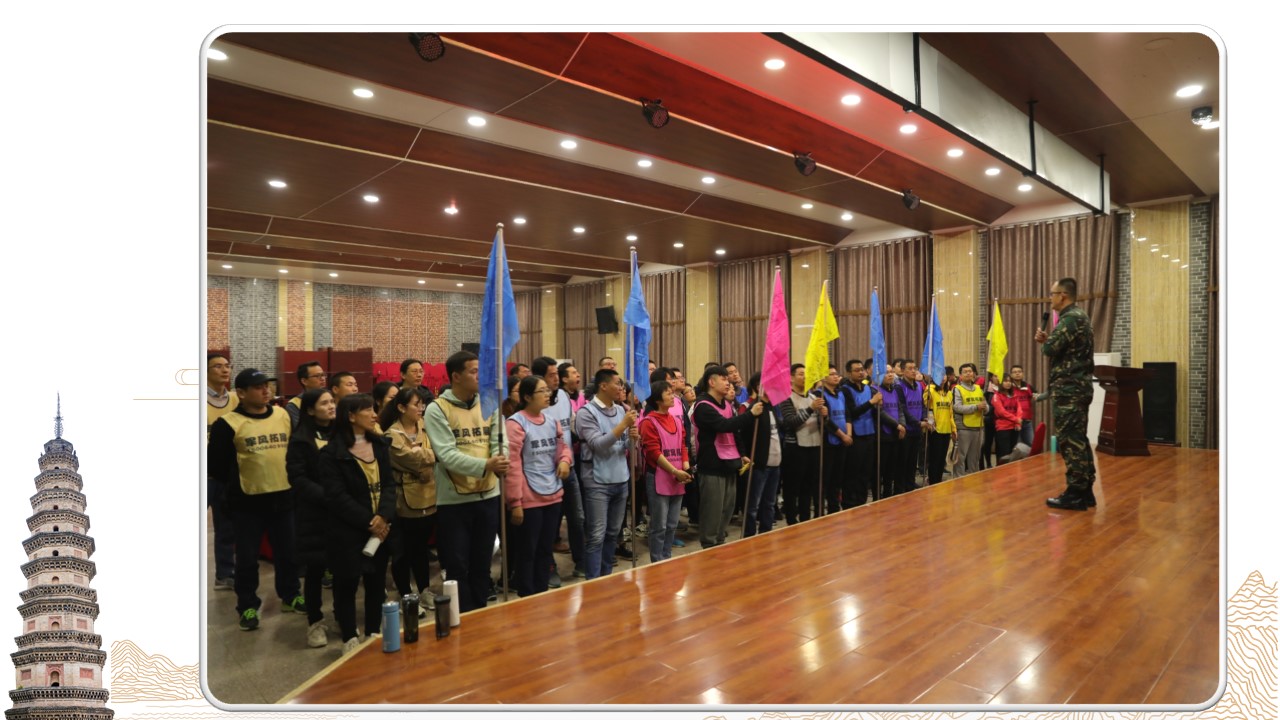 工欲善其事,必先利其器,一個好的團隊從來不打無準備的戰。每一個挑戰的開始,我們必須為其準備很多——或是戰略、或是分工、或是決策。分隊組建小隊文化,“紅紅火火隊”、“破浪隊”、“絕 隊”、“使命必達隊”、“666隊”、“飛黃騰達隊”、“華子隊”、 “54青年隊”八組隊伍快速組建完成,接下來選隊長、擺隊形、喊口號,團隊展示更是創意無限。大伙兒精神抖擻,口號嘹亮,氣勢雄壯,新稀寶集團的風采在這一刻,在一聲聲清晰的回音里,展露無遺!